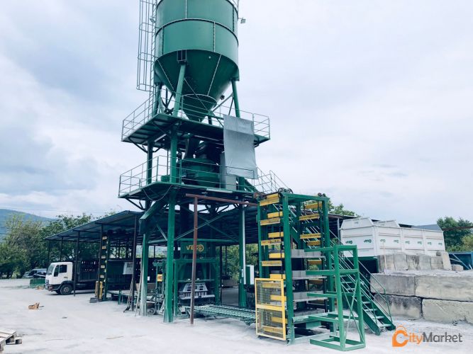 იყიდება COMPACT / AVANTGARDE 6.1 სრულად ავტომატური სისტემის ბლოკის-ქვაფენილის-ბორდიურის და ბეტონის დანადგარი. ერთი ბუნკერიანი - სრულად ავტომატური სისტემა - პადონების გადაადგილების სისტემა სატვირთელით - ნედლეულის სისტემა სრულად ავტომატური (ბუნკერი და ცემენტის სილოსით).დღიური წარმოება 6.000 ცალი 20- იანი ბლოკი, ქვაფენილი 400 მ2 და ბორდიური 2.000 ცალი - ბეტონის წარმოების მოცულობა 30 m³ / საათში - გადაზიდვის მოცულობა 3 x OT კონტეინერი. დამონტაჟების ადგილი 85 მ2 - საერთო სიმძლავრე 37 კვ - პადონის ზომა 55 x 115 და მაქსიმუმ 2 კაცი მუშაობს წარმოებაში. განკუთვნილია 24 საათიანი მუშაობისათვის. სპეციალური ძრავებით ძალიან სწრაფი და ხარისხიანი წარმოება აქვს. მარტო ყალიბის შესაცვლელად 2 სმ.-დან / 25 სმ.-ამდე სიმაღლის ყველა სახეობის წარმოება შესაძლებელია. გამოცდილი სამუშაო გუნდის წყალობით დატვირთვა- გადაცემა და განბაჟების მსგავსი სამუშაოების შესრულებაში, თქვენი ჩარევის გარეშე ყველა ამ საქმეს თავად ვასრულებთ.