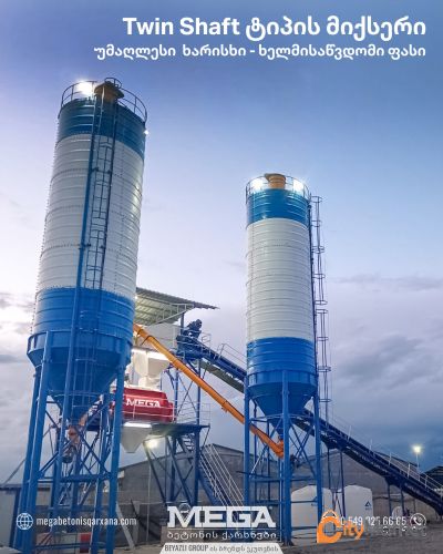 MEGA 90 მ³ / საათი – ბეტონის ქარხანა. TWIN SHAFT მიქსერი / – 1.5 მ³ მოცულობის.