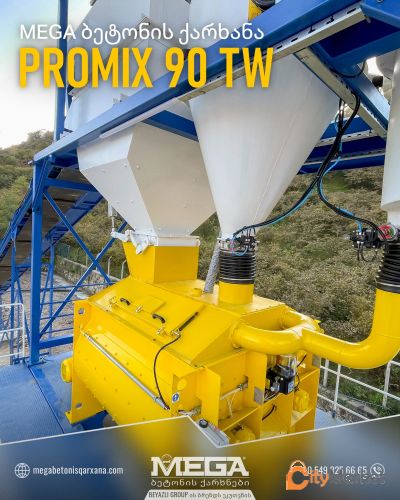 MEGA 90 მ³ / საათი – ბეტონის ქარხანა. TWIN SHAFT მიქსერი / – 1.5 მ³ მოცულობის.