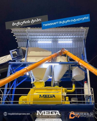 იყიდება MEGA 90 მ³ / საათი – სტაციონალური ბეტონის ქარხანა. TWIN SHAFT მიქსერი / – 1.5 მ³ მოცულობის.