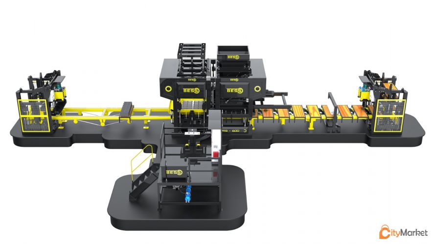 ავტომატური BESS Prs - 600 მოდელი ბლოკის დანადგარი. ნახევრად ავტომატური მართვის სისტემა 8 საათში 6.000 ცალი20 იანი ბლოკის წარმოების შესაძლებლობით.