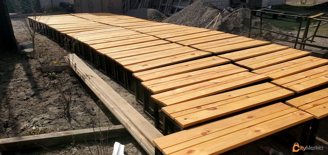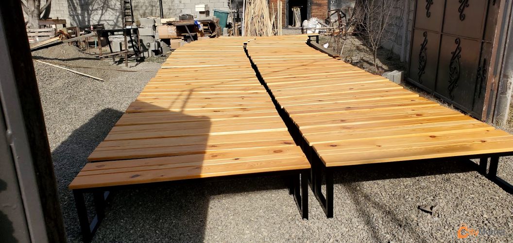 ხის მასალა: გამომშრალი ფიჭვი დამუშავებული თანამედროვე სტანდარტებით ტენიანობა არ აღემატება 11 %-ს, ზედაპირი დამუშავებულია თხევადი მაკაგონით რომელიც გაჟღენთილია ხეში და არ იკარებს წყალს რის საშუალებითაც გამოირჩევა მრავალწლიანი გამძლეობით.