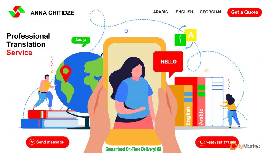 არაბული ენის სერთიფიცირებული თარჯიმანი გთავაზობთ ნებისმიერი ტიპის, სირთულის, შინაარსისა და ზომის დოკუმენტის თარგმანს ქართულიდან არაბულ ენაზე და პირიქით. რა თქმა უნდა, საჭიროებისამებრ შესაძლებელია თარგმანის ნოტარიულად დამოწმებაც.