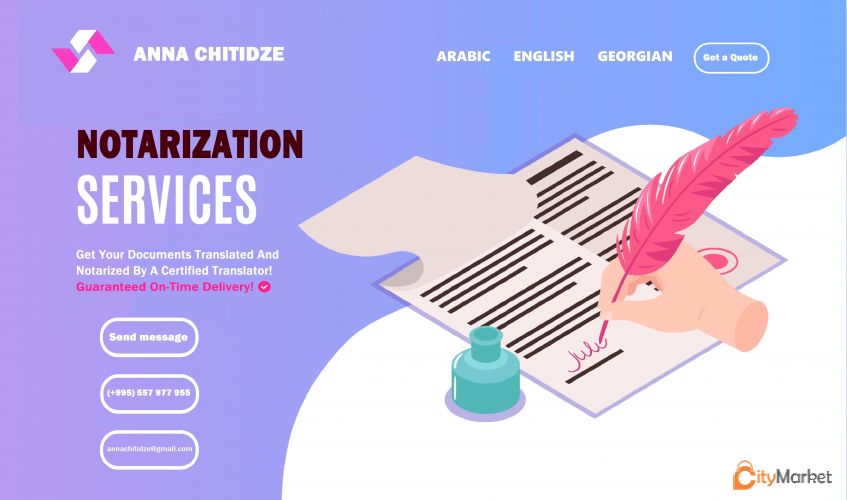 არაბული და ინგლისური ენების სერთიფიცირებული თარჯიმანი გთავაზობთ ნებისმიერი ტიპის, სირთულის, შინაარსისა და ზომის დოკუმენტების თარგმანს ქართულიდან არაბულ/ინგლისურ ენაზე და პირიქით. რა თქმა უნდა, საჭიროებისამებრ შესაძლებელია თარგმანის ნოტარიულად დამოწმებაც. მომსახურების ფასი შეთანხმებით. თარგმანის მაღალი ხარისხი და მისი დროულად ჩაბარება გარანტირებულია.