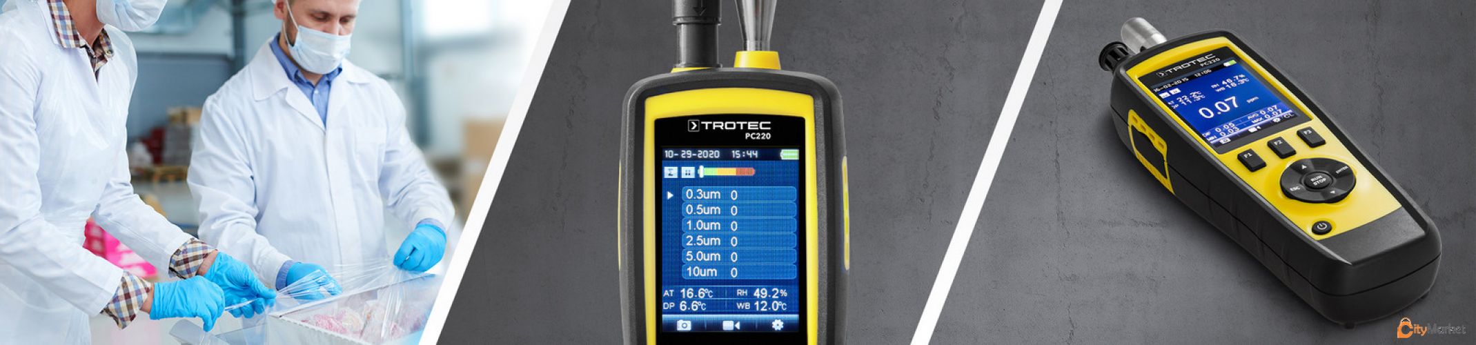 ნაწილაკების მრიცხველი PC220 10-1-ში გარემოს საზომი მოწყობილობა ჰაერის ნაწილაკების მონიტორინგისთვის, გაზის გამოვლენისა და კლიმატის მონაცემების აღრიცხვისთვის PC220-ით თქვენ გაქვთ მრავალმხრივი მობილური გარემოს საზომი მოწყობილობა. ის შეიძლება გამოყენებულ იქნას არა მხოლოდ შიდა ჰაერის ნაწილაკების სისუფთავის ერთდროულად გამოსავლენად ექვს სხვადასხვა ზომის არხზე 0.3 μm-დან 10 μm-მდე, არამედ ფორმალდეჰიდისა და ნახშირბადის მონოქსიდის გაზის კონცენტრაციისთვის. მისი შემდგომი გამოყენება შესაძლებელია კლიმატის მონაცემების დასადგენად, როგორიცაა ჰაერის ტემპერატურა, ტენიანობა, ნამის წერტილის ტემპერატურა და სველი ნათურის ტემპერატურა. გარდა ამისა, იმის გამო, რომ საზომი მოწყობილობა აჩვენებს ნაწილაკების მასებს უშუალოდ მასის პროპორციულად μg/m² ჰაერში, PC220 შესაფერისია ჰაერში ჩასუნთქული მტვრის (PM10) და ალვეოლური მტვრის (PM2.5) კონცენტრაციის რაოდენობრივი განსაზღვრისთვის. ). ამ ISO-21501-4-ის შესაბამისი ლაზერული ნაწილაკების მრიცხველის სტანდარტულ აღჭურვილობაში ასევე შედის დაინსტალირებული ციფრული კამერა საზომი გარემოს დოკუმენტაციისთვის ფოტოებისა და ვიდეოების საშუალებით. გაზომვის მონაცემები, თარიღი და დრო ასევე ინახება და მითითებულია როგორც ფოტოებში, ასევე ვიდეოებში გაზომვის ადგილის გასარკვევად. PC220-ს ასევე გააჩნია მონაცემთა ჩაწერის ინტეგრირებული ფუნქცია უწყვეტი გაზომვებისთვის: 5000-მდე გაზომვის ჩანაწერი შეიძლება შეინახოს უშუალოდ შიდა მეხსიერებაში – რომელიც შეიძლება დამატებით გაფართოვდეს 16 გბ-მდე MicroSD ბარათის გამოყენებით. გაზომვის შემდეგ, ყველა აღმოჩენილი მონაცემი შეიძლება სწრაფად და მარტივად გადაიცეს კომპიუტერზე დოკუმენტაციის ან ანალიზის მიზნით USB ინტერფეისის საშუალებით. მისი მრავალრიცხოვანი საზომი ფუნქციები PC220-ს იდეალურ გადაწყვეტად აქცევს ჰაერის ხარისხის მონიტორინგისთვის, დასაცავად და შესაფასებლად გამოყენების სფეროებში პროდუქტიულობა, ჯანმრთელობა და უსაფრთხოება. ნაწილაკების მრიცხველი PC220 – 10-1-ში გარემოს საზომი მოწყობილობა: ჰაერის ნაწილაკების სისუფთავე 6 ნაწილაკების ზომით, ამავე დროს, მერყეობს 0.3-დან 10 მკმ-მდე. სასუნთქი მტვრის (PM10) და ალვეოლური მტვრის (PM2.5) კონცენტრაციის რაოდენობრივი განსაზღვრა ოთახის ჰაერში μg/m³ ჰაერში ფორმალდეჰიდის კონცენტრაცია ჰაერში ნახშირბადის მონოქსიდის კონცენტრაცია ჰაერში ნაწილაკების მასის კონვერტაცია და HCHO და CO-ს ჩვენება მგ-ში ჰაერის მ3-ზე ფილტრის ეფექტურობა Ფარდობითი ტენიანობა ჰაერის ტემპერატურა ნამის წერტილის ტემპერატურა ს