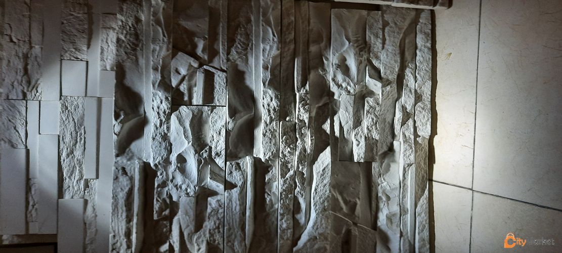 ფიქალი, ქვის ფაქტურა. დეკორატიული კედელი ინტერიერის დიზაინში
