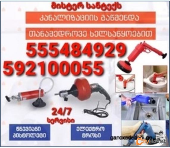 კანალიზაციის გაწმენდა ელექტრო თოკით და მაღალი წნევის გამოყენებით თბილისი 592100055 ჩვენი კომპანია გთავაზობთ მომსახურებას ბლოკირების სწრაფად და ეფექტურად მოსაშორებლად. მისტერ სანტექსი თქვენი ოჯახის მეგობარია