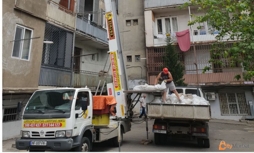 ჩვენ გთავაზობთ როგორც სამშენებლო მასალის,ასევე ავეჯის მაღალ სართულზე აზიდვა-ჩამოზიდვის მომსახურებას მე-18სართულის ჩათვლით.საჭიროების შემთხვევაში გვყავს ჩვენი მუშა ხელი და სატვირთო ავტომობილიც.შეგვიძლია უზრუნველვყოთ ხარისხიანი სამშენებლო მასალების გარანტიით ადგილზე მოტანა,ასევე, შეგვიძლია უზრუნველვყოთ სამშენებლო ნარჩენების გატანა.