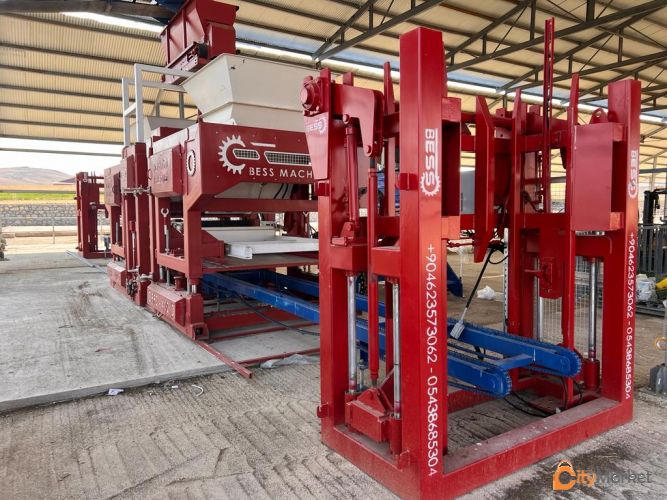 ავტომატური BESS Prs - 402 მოდელი ქვაფენილის დანადგარი. ნახევრად ავტომატური მართვის სისტემა8 საათში 300 m2 ქვაფენილის დამზადება. შეუძლია აწარმოოს ნებისმიერი მოდელი ქვაფენილის ფილა როგორც რუხი ასევე ფერადი.