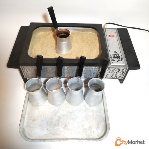 ყავის მოსამზადებელი ელექტრო აპარატი ქვიშაზე ტურკა.